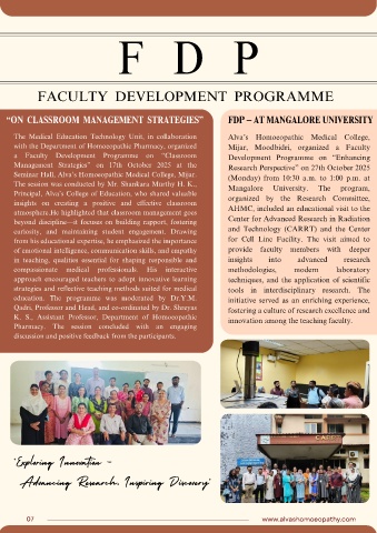 with the Department of Homoeopathic Pharmacy, organized Mijar, Moodbidri, organized a Faculty