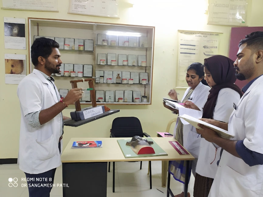 It’s a department with Forensic science which deals with the medico-legal aspects of death, injuries and psychiatric conditions. We also deal with the moral principles of a medico which is not just taught but made to incorporate within them. In the Toxicology part we study the toxic effects of poisons along with treatment and medico-legal aspects. It’s the subject of second year along with the subject of pathology which helps in getting the complete knowledge of abnormalities which helps in connecting basics of first year with clinical topics of succeeding years. We also have we equipped department with hundreds of poisons, weapons, charts etc. We also make the students understand the methods of post mortem by having live post-mortems and court visits to get the knowledge of legal trials.